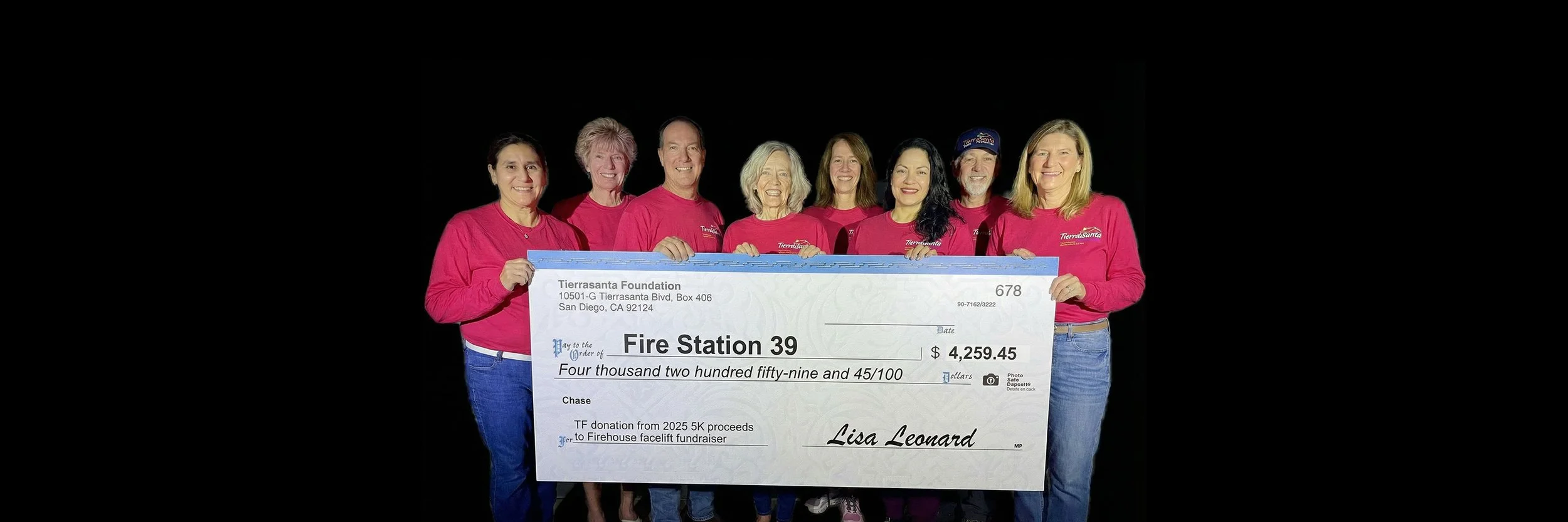 Above, you’ll see members of the Tierrasanta Foundation Board proudly holding a $4,259 check to present to Fire Station 39 — funds raised from last year’s Monster Dash 5K.